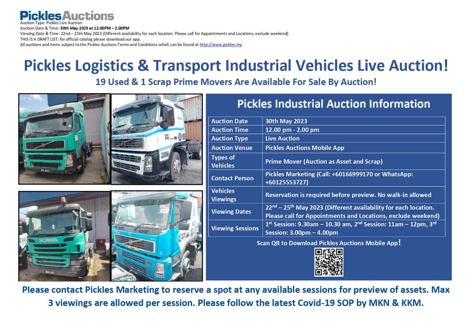 19 Used & 1 Scrap Prime Movers are available for sale by Auction