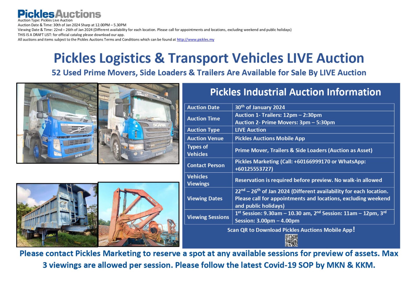 52 Used Prime Movers, Side Loaders & Trailers Are Available for Sale by LIVE Auction